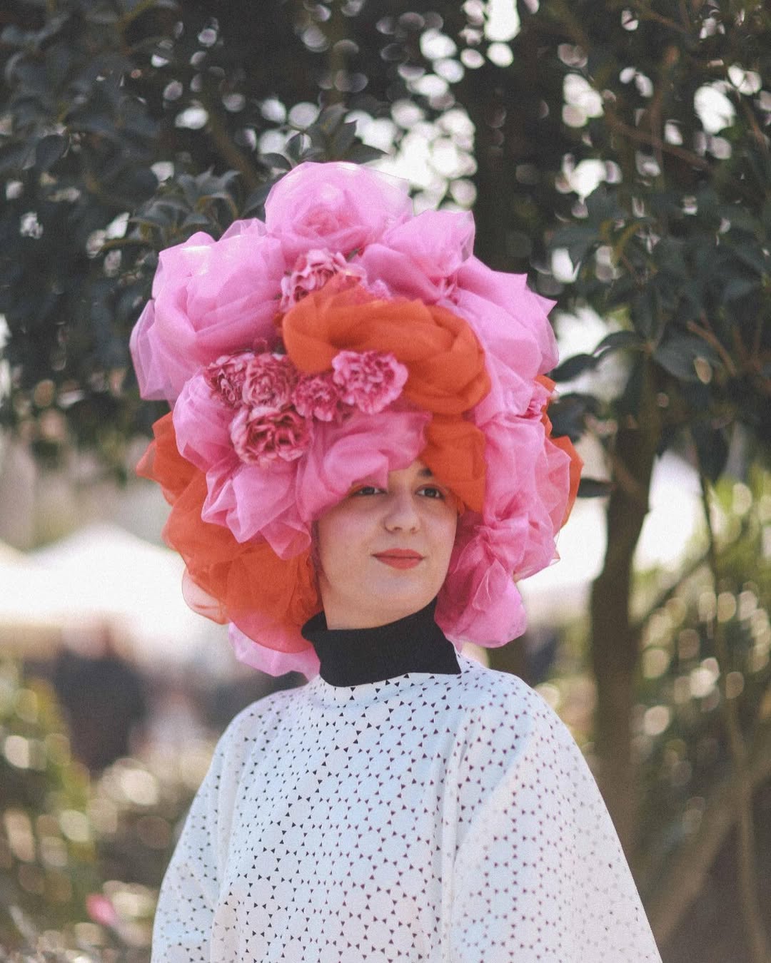 Sorprendersi è un continuo rinascere , un’edizione di esplosione di colori e teste fiorite sia con fiori che con stoffe.